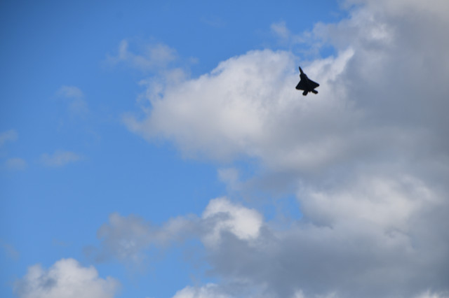 It is a good shot - there's virtually no blurring of the jet - which is pretty impressive considering their speed. And there's a very good contrast between the sky and clouds - gotta love that blue/white combo.