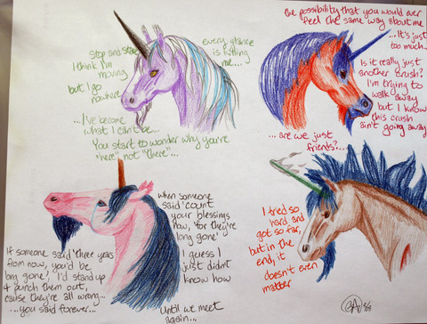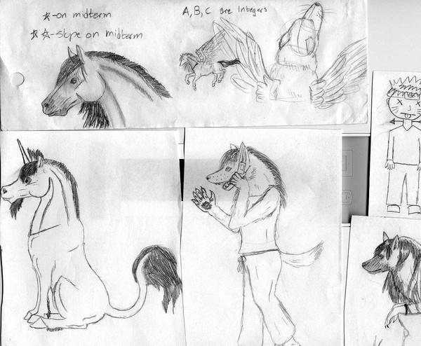 I started this picture a while ago, so if it looks old that would be because it is old. ^^Just a picture of the eight-legged horse Sleipnir, the wolf Fenrir(?) and the two ravens (can't remember their names). I think they're like children of Odin or some Norse god. Hahaha. I just wanted to try out the whole eight-legged horse thing. ^^
