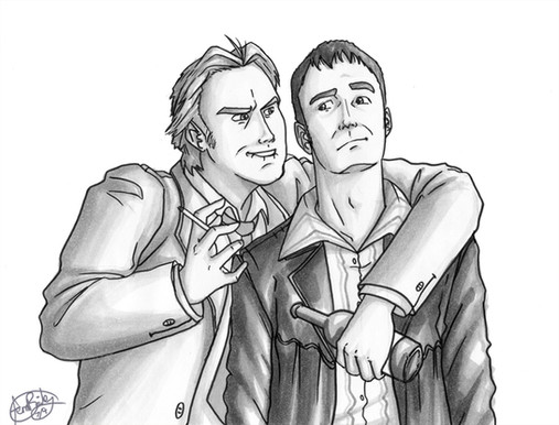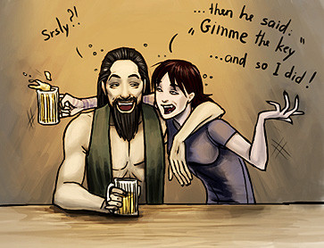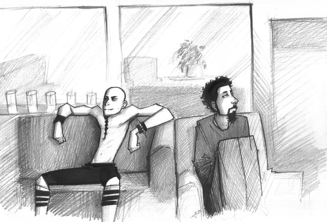 Nathan and Charles share some drinks and a bit of light conversations.Done with Copic Markers and Microns.