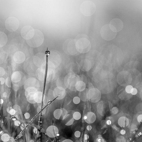 I'm a sucker for waterdrops so naturally I'm drawn to this. I think the image hold this perfect compositions of focus, slightly out of focus and bokeh. Making it black and white really was a great idea, it makes the waterdrops and plant stand out apart and yet somehow blend together so well and also I think it emphasises the glimmer. This probably would not have been if it were still in color. It really is a very beautiful shot! Great work