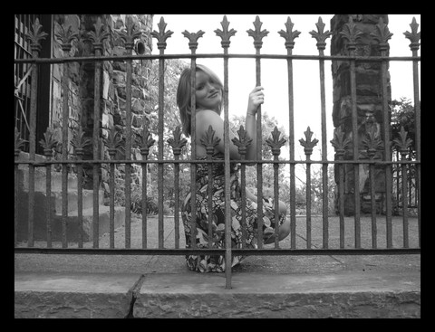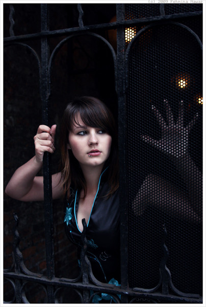 Very cool. The blue really makes this unique, your eyes, the bars, the dress. Wonderful work!
