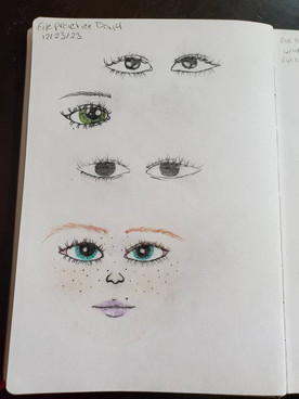 I still don’t have much art desire but it isn’t zero. I am trying to get my groove back by trying ‘little things’ and simple stuff. This time I decided to study ‘eyes’ to see what style really captures my heart. Really it is more exploring and discerning what truly is my style. If I can see what type of eyes I love to draw, lips, etc etc. then I can likely put all those pieces together better since I don’t have to wallow around each time I doodle to see what falls off the mark maker. (Not that I wouldn’t or shouldn’t do that- you have to let your mind play and perhaps enjoy some happy accidents too!)You can see that as I let my mind ‘warm up’ the drawings got bigger and I even decided to do some faces. I don’t like to play favorites (Chenelle or Lily anyone?) but I like the one on the right a lot. It turned out well and I love that 20’s style.