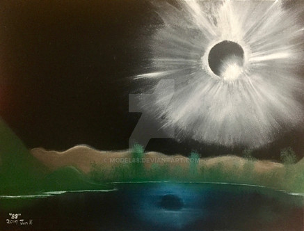 I also tried oil paint/Bob Ross style. SOLVENT FREE. Yep, no KaBoom where I live!!! I also worked with watercolors and Chinese ink. And a little bit of charcoal.