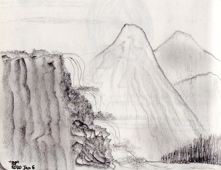Even though it now looked like every animal on The Ark came by and shed on it (s#%t on it?) I decided to just keep going. Wiping it off would only mean more cleanup. And perhaps when it was dry it would look better. And besides, most people look at stuff from further away than I was and may not notice it (much). Other happy accidents were as I mixed the hills color 'marbled', not mixing it to death it happened that it highlighted the hilltops perfectly. I totally did not plan that so that was awesome!