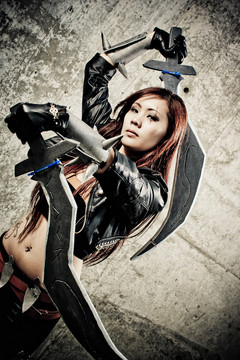 i like the facial expression very sinister.. and the photo is contradicting in a good way, it's like it wants to seduce you in one face and kill you in the other the face tattoed on your arm, who is that? that is really cool