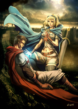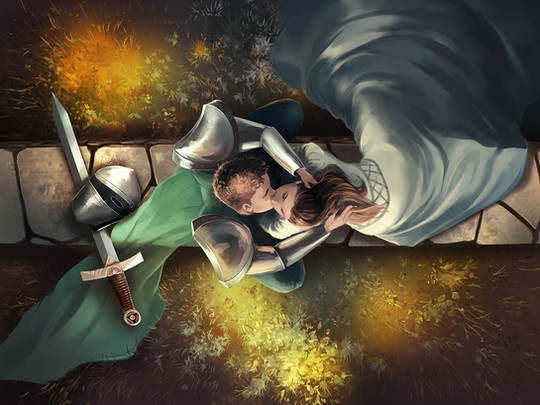 #digital #illustration #knight #painting #princess #sunset #art #armour #castle #digitalpainting #fantasy #ruins #seethrough