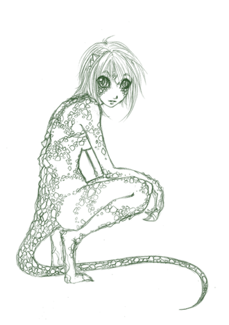 I love everything about this picture: The hair, the expression, the skin-color, the pose, and especially the tail. The backstory practically writes itself! lol