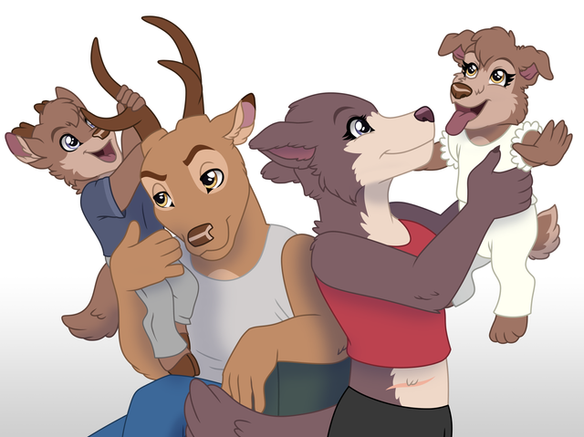 It's very rare to see family shots of anthros. I absolutely /love/ this pic . There was only one other deer anthro sketch I saw, many years ago by Sarabou.