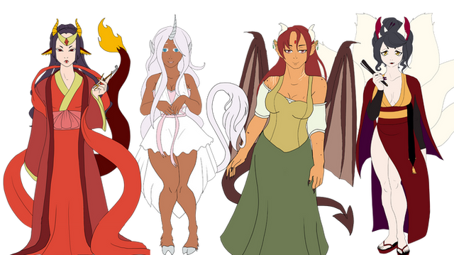 A hi-res version of Ernil and his family. From left to right: Arafain, Luinwe, and Ernilaras.A bit about the does: