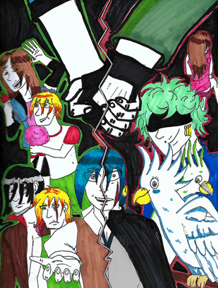 A poster-like drawing of Modus Opera, but what's this? Who are those two characters belonging to neither squad?The black-haired guy on the left is Simon. The blonde guy on the right is Daxem.