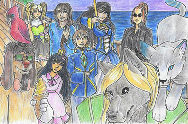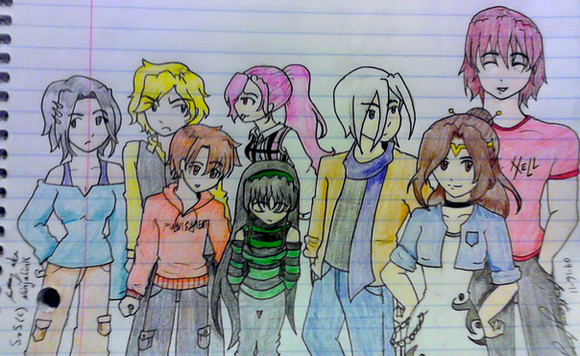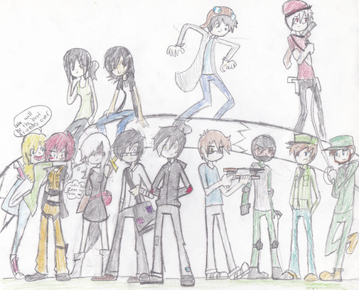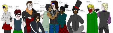 Since the drawing ended up being too big for banner display, I decided to make it its own submission.Because this is a new render of the groups Modus Opera, I'll remind you who's whom.
