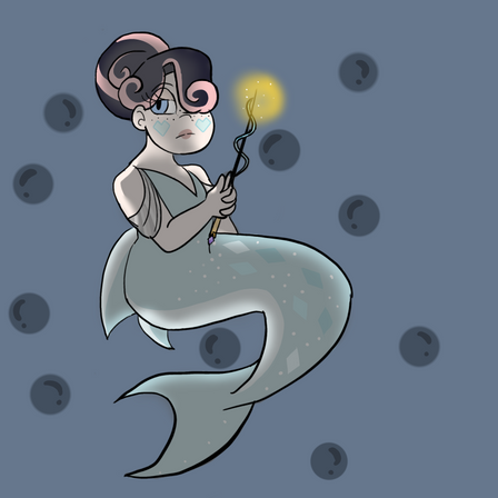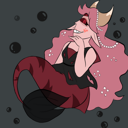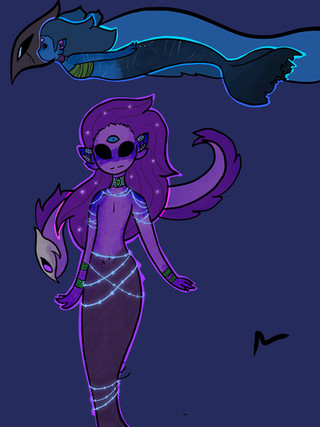 This is what Cassandra would look like If she goes under the water with her mother. She would be the last one biologically capable of being merfolk at her own will(Sheβs kinda of like a lion fish or stone fish, just for being part demon)