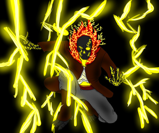Johnny Blaze, a motorcycle stunt performer in a traveling circus, After selling his soul to one whom he believes to be Satan but actually is the demon Mephisto, he becomes the nocternal demon Ghost RiderNote: This Character is owned by MARVEL Comics and Stan Lee, I own no copyright.