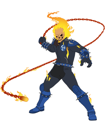 Ghost Rider: Well I'm a former daredevil who sold his soul to the devil which is how I got the name Ghost Rider.