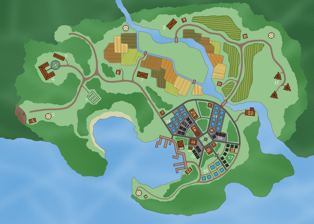 Hello all, well this is going to be my final image in regards to Mythgate... at least for a while until I can get things moving with it. Anyways, I've spoken quite a bit on the Mythgate and some of the city's locations in the previous Character Bios, so why not collab them into one image. Now this is only a basic top view idea and clearly some spaces need to be filled, but maybe somewhere down the line I'll give it more detail maybe even include a small history of the city was founded on the side. But for now, please enjoy this somewhat detailed town map of the city beyond the gate. Hopefully it will give you a rough idea for the setting of the story I'm trying to create.Related content