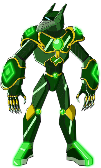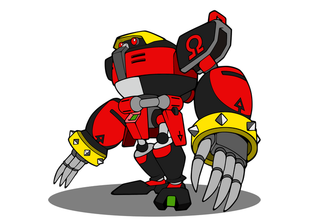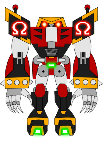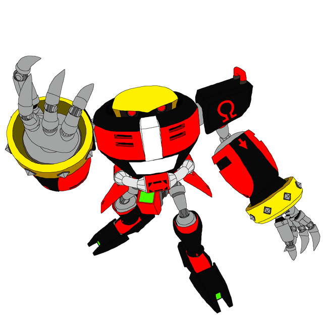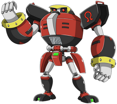 Character Bio:Originally the last and most powerful E-100 series robot built by Ivan Robotnik, designation E-123, he was one of the most deadly machines in the mad scientists arsenal, and as such was one his way of becoming one of his generals. However after a terrible lightning storm hits Mobius, E-123 was struck by lightning during a fight with Sonic the Hedgehog, which in turn damaged him badly and reset his programming, wiping his memory clean and leaving it a blank slate. Abandoned by his fellow robots, E-123 wandered aimlessly through the forests outside of the city empty, lost, and curious of his new environment like a child learning of his world. Eventually he was found, but not by any robot, but rather a small child, Cream the Rabbit, obviously she was scared of him at first but once she saw that he meant her no harm, she soon befriended the metal giant, giving him his new name of Omega and decided to keep him a secret from the other Freedom Fighters. Slowly, Omega began to learn, through Cream's attempted teachings, how to speak, about right and wrong, life and death and some elements of nature, specifically the miracle of things that grow in the woods. Unfortunately their friendship suffered a heavy blow once another Freedom Fighter discovered Omega and drove him off, forcing him to run away and get recaptured by Robotnik's machines. After getting rebooted once again, Omega returned to his original state of blind obedience. However having followed the robot all the way back to the city Cream risked everything, disregarding the order of her elder Freedom Fighters, and attempted to bring Omega back to the friend she came to know, when she finally found him again it appeared as though he was going to used his weapons on the young rabbit to end her life but once she was within range, a series of images began to flash in Omega's cybernetic mind, images that were once part of his memory before his second reboot. Finally recognizing his friend, Omega decided there and then to abandon his original programming and turned his guns onto Robotnik's forces, vowing revenge on his creator and all the other machines he built for the suffering he had caused and almost forcing him to kill his friend. After the two escaped, and upon learning of what had happened from Sonic, who had witnessed the whole thing, the other Freedom Fighters welcomed Omega into their ranks.