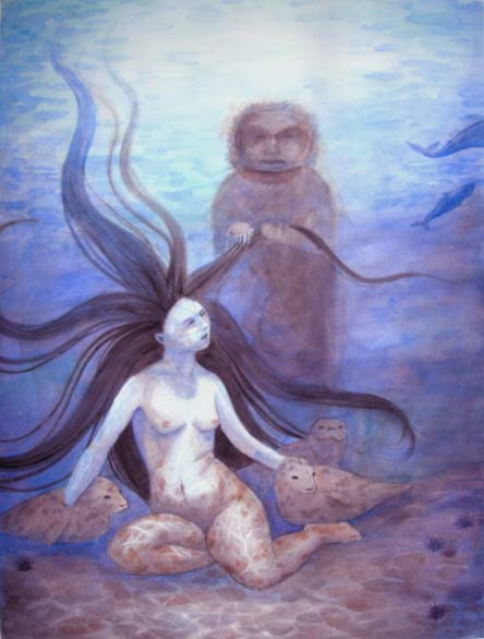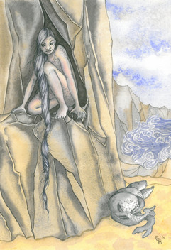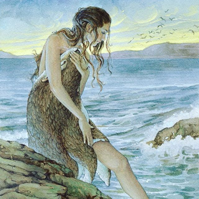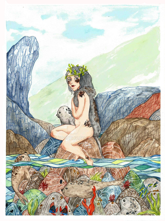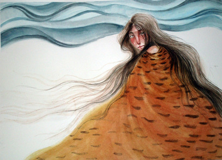 A selkie comes out of the sea for her half human child. She longs to take it with her, but doesnt know how...Done during Jenny Dolfen's wonderful workshop