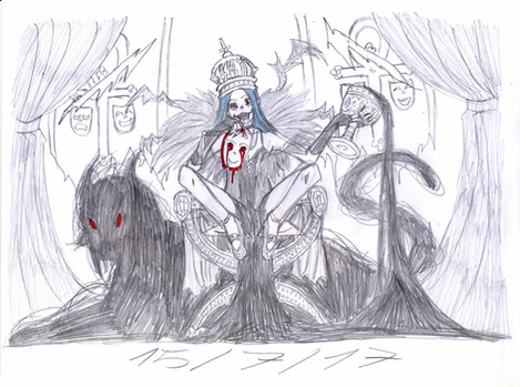 Es la segunda vez que adapto un dibujo a ese estilo concreto, el primero el de las Hermanas Etherna en la Noche-D, y desde luego se nota la diferencia. xD Lo que lleva esta mujer es una máscara a modo de antifaz, por suerte aquí sin detalles para que no quedara raro como en el sketch donde viste igual. Efectivamente, se sabe que esta mujer no se lo carga aunque esté de muy mala hostia, pero deja quiera que no la intriga de porqué no lo hizo, pese a ella estar bastante cheta. Las manchas de sangre fue otro abuso de texturas. xD Pero igualmente sirvió y ahorró mucho trabajo que no habiéndolo tenido que hacer a mano. Respecto a los ojos, yo no digo nada, pero sí para el copyright; y es que da igual el tiempo que pase, sin base no habría nada de esto.