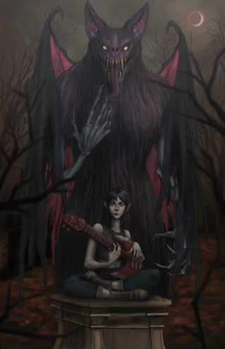 Y por último, y ya sí diciendo su nombre, me gusta cómo te ha quedado el pelo de Marceline, recordándome un poco en estilo al de la demonia que hiciste. Se nota también una leve texturilla en la camiseta, y me gusta el detallismo de la estaca. Le hubiera puesto algo más de sombra bajo la barbilla quizás, pero realmente para mí lo de poner sombras es una parte tricky, así que no sabría decirte. Buen detalle también el relieve en las heridas del bocao illo.