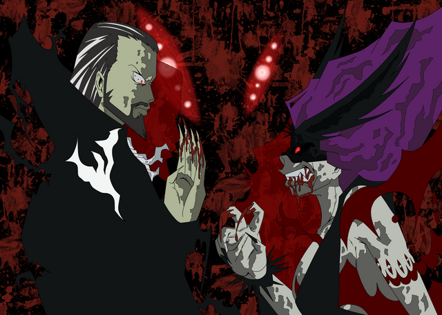 Mientras que todos cayeron en un mismo folio, el Rey Vampiro se llevó un folio para él solo. xD El tipo es la mar de grande y aunque no sea un diseño muy recargado, ahí traté de compensar con el detalle de los pelos. El orejudo Hierofante es el que más cambio tiene entre el diseño original y su rediseño precisamente por marcar sus rasgos faciales, pero porque a fin de cuentas representa al vampiro de la vieja escuela (por ende el bigote que no falte xD).