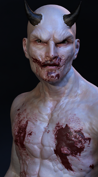 Nice anatomy and subsurface scattering. The lighting really adds to the spooky feel. I like it!