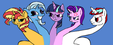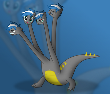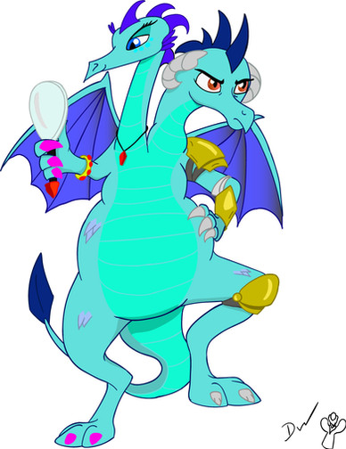 A drawing of Princess Ember after she found a magic gem that she wanted to eat, but before she did it fused to her chest. She start to feel weird and neck and body start to grow. She start to grow two other heads, and now she is now looking for help from somepony to turn her back.Related content