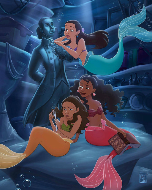 That moment when you're trying to draw Burr, but end up drawing the Schuyler mermaids. OH welp XD(Swim, swim) Angelica!
