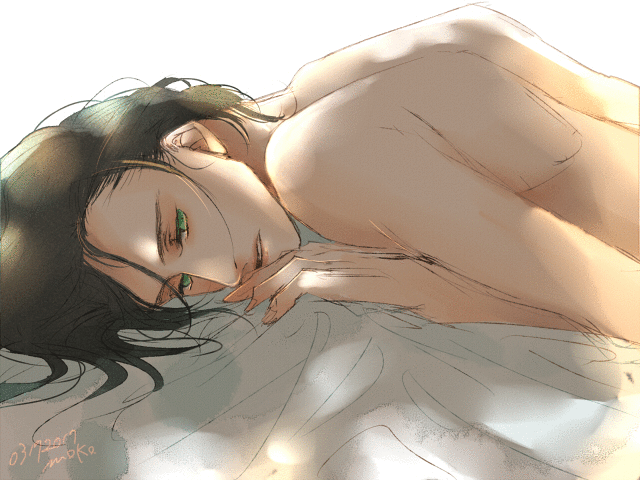 I love how you drew his hair, how it lies around the floor and the green-light that filters through his dark hair