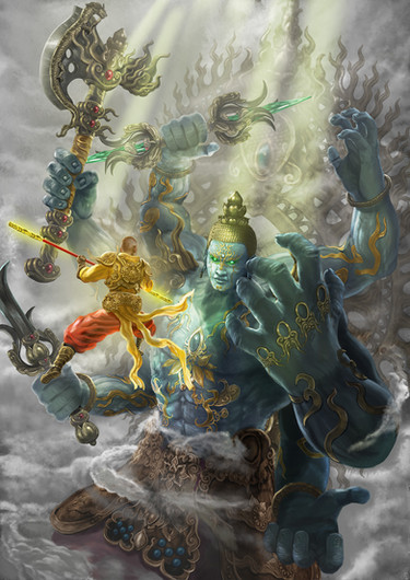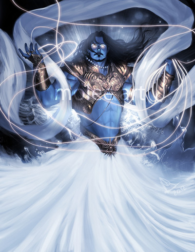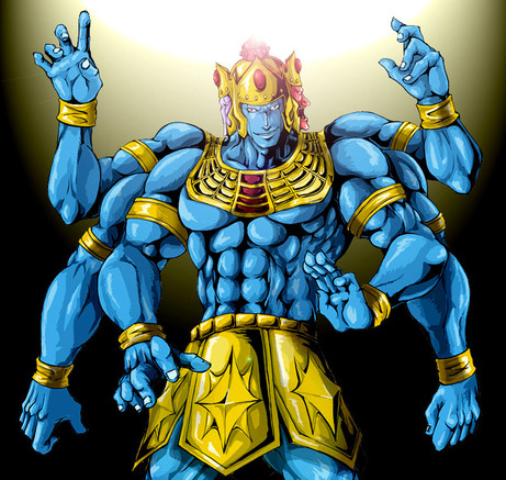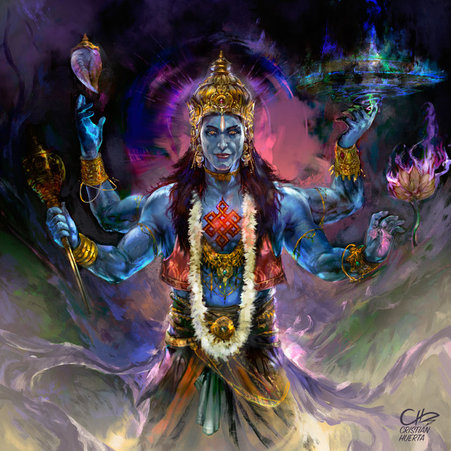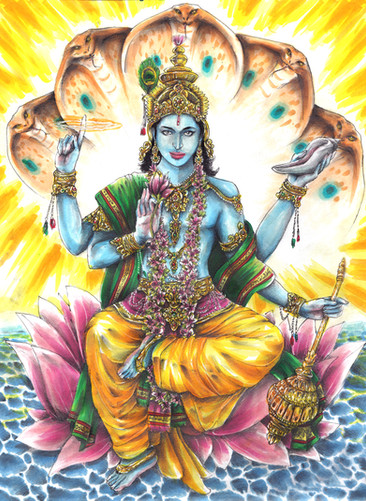 and i've drawn him with six arms to show that he's an avatara of lord vishnu.