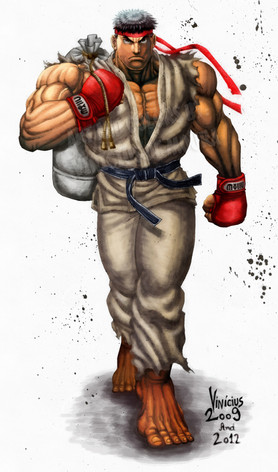 This is still one of my favorite pieces, I was going to do a ryu piece for a sketchjam submission, and your old ryu concept kept coming to mind...this however is what I'd expect him to look like, and honestly my favorite part is that he looks like he travels. he has wear and tear. and I don't care what anyone says, the sandals were a good addition.