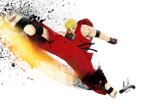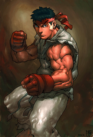Ryu getting down to business, fighting head on. His determination to be the strongest fighter is what make him one of the most prominent characters in the S.F./Capcom universe.