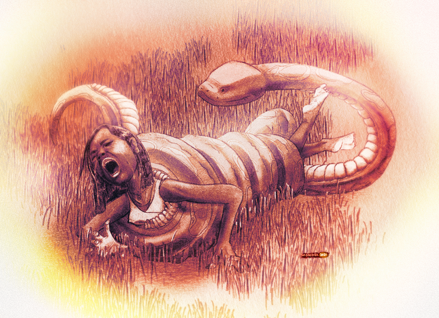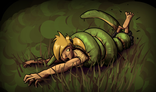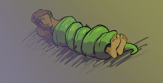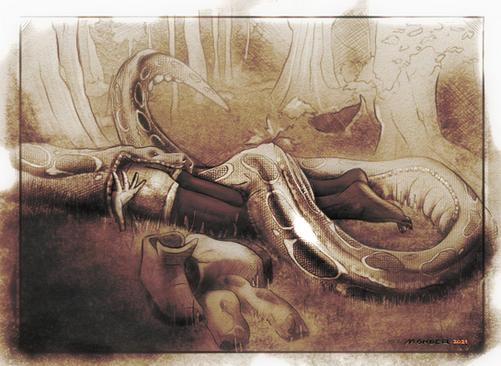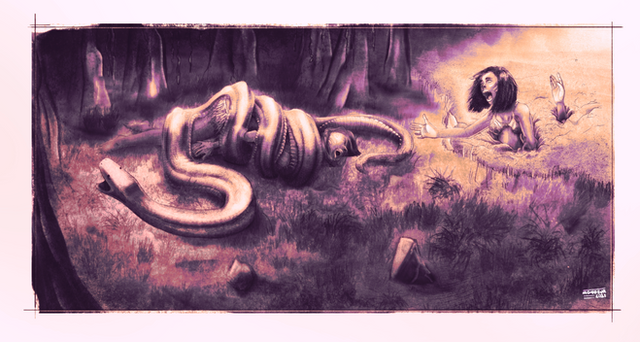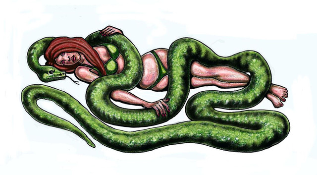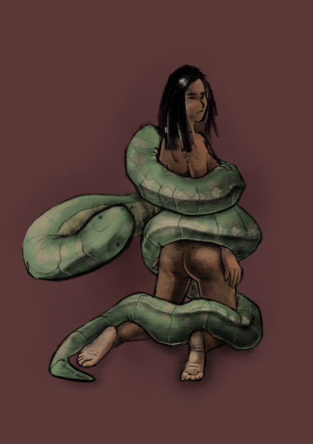 She slid her foot under the coil of the snake, but it won't let go...(Testing out new art software. Took an hour)