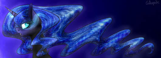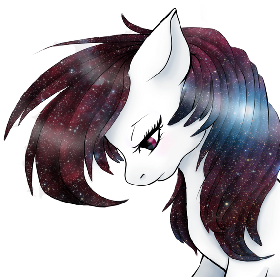 this is incredibly beautiful. the shading and highlights are just right and goes with one light source. I like the idea of stars or sparkles but I think it would be more effective if they were not so pixelated. the horn is different but suites the style of drawing perfectly. I love how you coloured the eye lashes to be the same as the mane and it brings out the eye. the hair flows perfectly and doesn't look distorted. I like how you didn't add a mouth or a face it make more simplistic and easier for people to look at. other then that it is a beautiful piece.