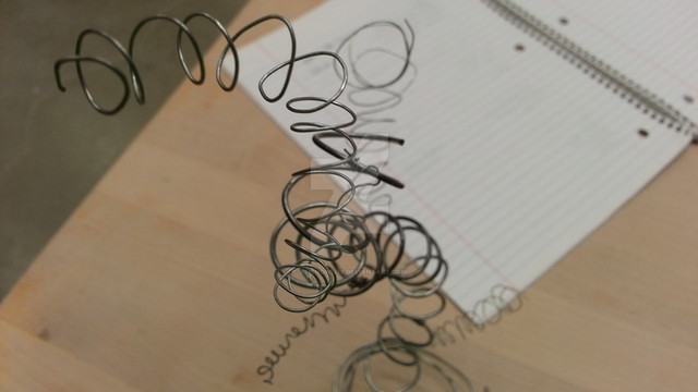 I weave chain mail and started making some little pieces because of how challenging some of the weaves looked and because you can finish them more quickly than a shirt. All these pieces start as straight wire, I make all my own rings from wire.This piece was done by making three bracelets of a half persian weave and then suturing them together with miniature links on the underside. A coworker liked it so much she asked me to make her a choker like it. I like the result but I need to contact her to get a photo of her wearing it.