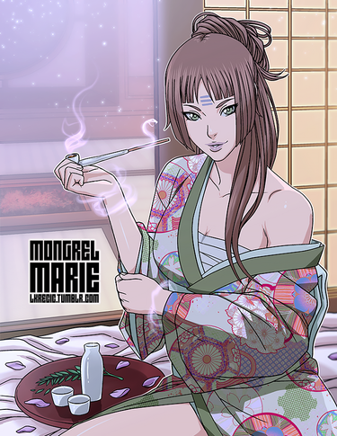 #fancharacter #greenhair #kunoichi #lamp #naruto #ninja #oc #painting #rain #village #amegakure #amegakureoc