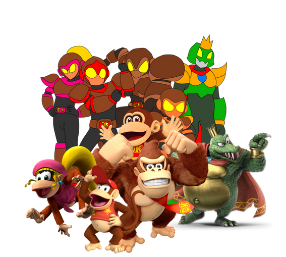Characters reprise their role in the new series. Donkey Kong has returned as previously mentioned, but his powers are draining while they last. Meanwhile, Mario, Luigi, Peach, Link, and Zelda find their zords frozen and turned against them. They would come in perfectly fine, but their Zords become broken and shattered as the arrival of their new enemy comes to town. Their zords get replaced with the Thunder Zords. No matter! They keep their powers as it is. Meanwhile, Donkey Kong had a dream that his powers were losing. Since that dream, Gruntilda stopped at nothing to make sure that his dream would become a reality. She therefore works hard to drain DK's powers until he becomes green no more. He fights, and fights, and fights like an awesome ape until his powers completely wear off. He then retires on a vacation for a while at DK Island.Mario seems a bit angered because he did not stop the magic candle from draining DK's powers almost completely. Fighting in a tournament, Mario becomes distracted and has to maintain his morale and patience as the team leader. After receiving a note from DK, Mario goes winning the Karate Tournament for the ape and wishes him fair well. After a long vacation, DK announces his return and the original NES team plan a surprise welcome party for his grand return. However, their surprise is not as much as DK's surprise as he returns as the White Ranger.