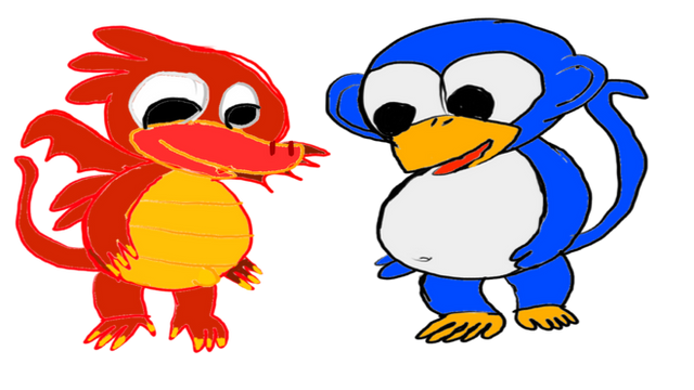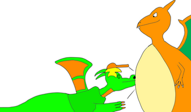 ForThought the cartoonist here made a pretty cute dragon character. He used to be an evil king of somekind, but no longer is, and is really annoyed by it. Thought it would be cute if my own mascot squirts this dragon in his precious belly button with a super soaker to tickle him.