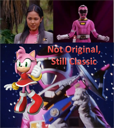 He then pass on the new morphers to the rangers, giving Sonic the power of the Blue Ranger and Tails the power of the Black Ranger.