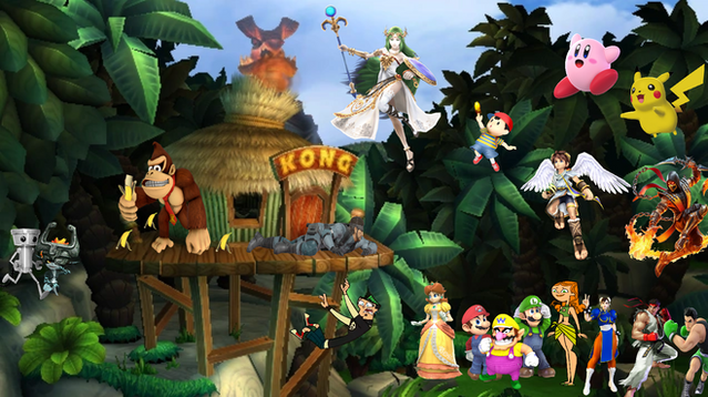 Donkey Kong, Dixie Kong, Diddy Kong, and Banjo and Kazooie, courtesy of Rareware