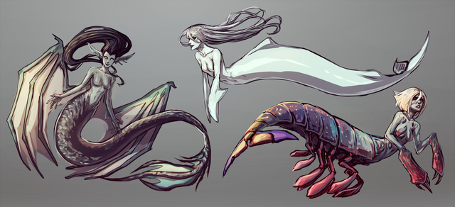 I like how you created all of these mermaid sub-species. It's definitely true to nature, that if they existed, they'd most likely evolve into different types based on their environments and food sources.