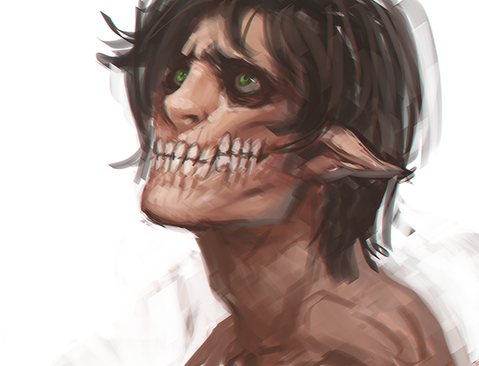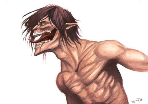 I just realized something. Eren's Titan form reminds me of a cat =l The ears, the eyes, know what I'm talkin bout?