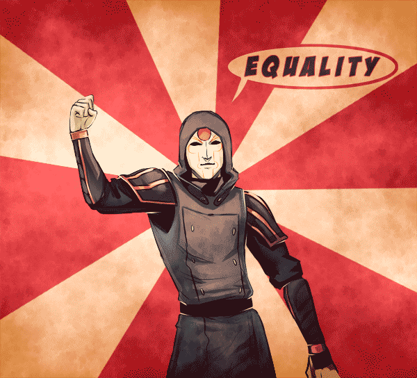 Now that's how you do an equalist rebellion advertisement lol Too bad he didn't have any of these posters with him, Korra would've been too busy staring at them rather than exposing him~