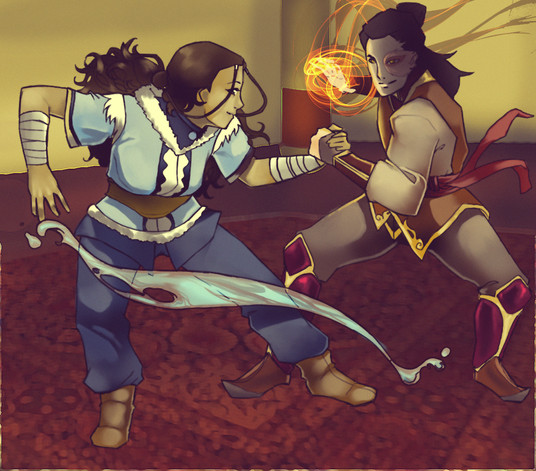 Poor Katara. I loved that scene. I love how it goes from Aang being a natural to Katara becoming a master and teaching Aang better waterbending in the show. I love the use of color and their expressions.