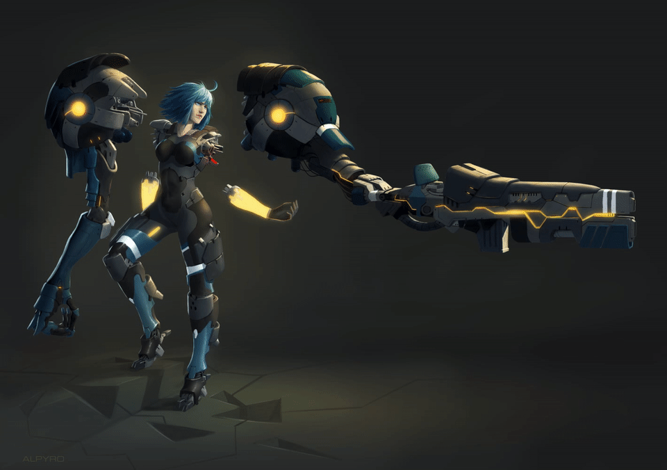 God she's badass... I love the details on her arm too and how it integrates to the rest of her body.