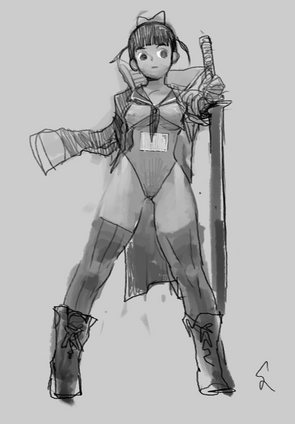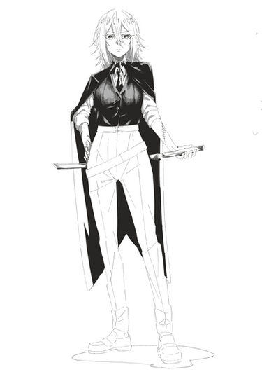 #suit #sword #blacknailpolish #businesssuit #businesswoman #swordswoman #thighhighs #shorthairgirl