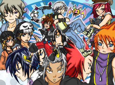 anyway I'm fond with the way this turned out. It gave me a chance to redesign my favorite Birth By Sleep characters and mess around with paint splatters