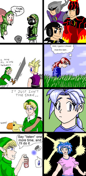 no problem, I just like the fact Ven is dressed as Luigi because Ven is my favorite KH character and Luigi is my favorite Mario character. And Terra's new 'armor' is funny too, I could just see Ven taking out a radio and trying to make Terra dance to Peanut Butter Jelly Time XD
