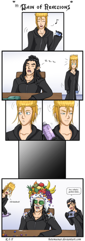 lol nice to see another 358 comic. i think my fovorite part is xion all shiny and strong and roxas weak. btw, have you read the KH novels? i just read the 358 novel translated online, its very interesting, and gives you a better perspective on all the characters, especially Axel and Riku, but also Xion and Roxas. Roxas's thoughts after Xion's death when he is trying desperatly not to forget her are really sad. if you are interested here is the link: