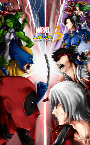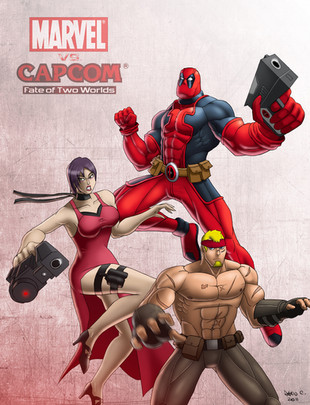 First doodle i've done in a while... been playing a lot of MVC3 lately with my buddies, and felt like drawing my main team:-Deadpool