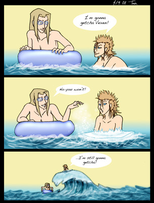 aqua is mad that eraqus assigned her to teach ven how to swim. also Master Eraqus's Lingering Sentiment makes a cameo appearance... as a floatation device (BBSFM exclusive!)Related content